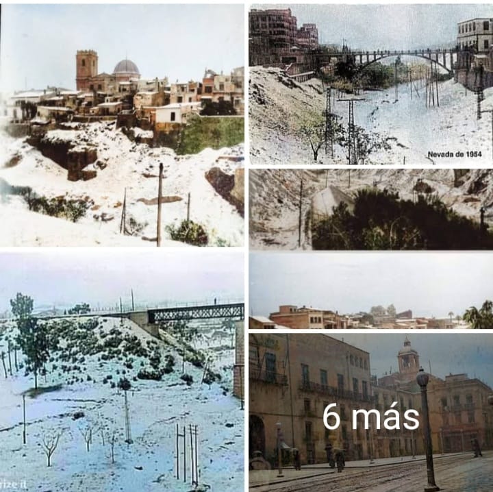 Publicado en FOTOGRAFIASFOTOS COLOREADAS NEVADA 1954por jaumePublicado enFOTOGRAFIASfebrero 6, 2026febrero 6, 2026 Fotos nevada 4 Febrero 1954. Plaça Baix Raval. Rambla del rio Tejados del Raval. Al fondo un palomar [Foto: Alvaro Garcia] VER GALERÍA DE FOTOS DE LA NEVADA EN ELCHE